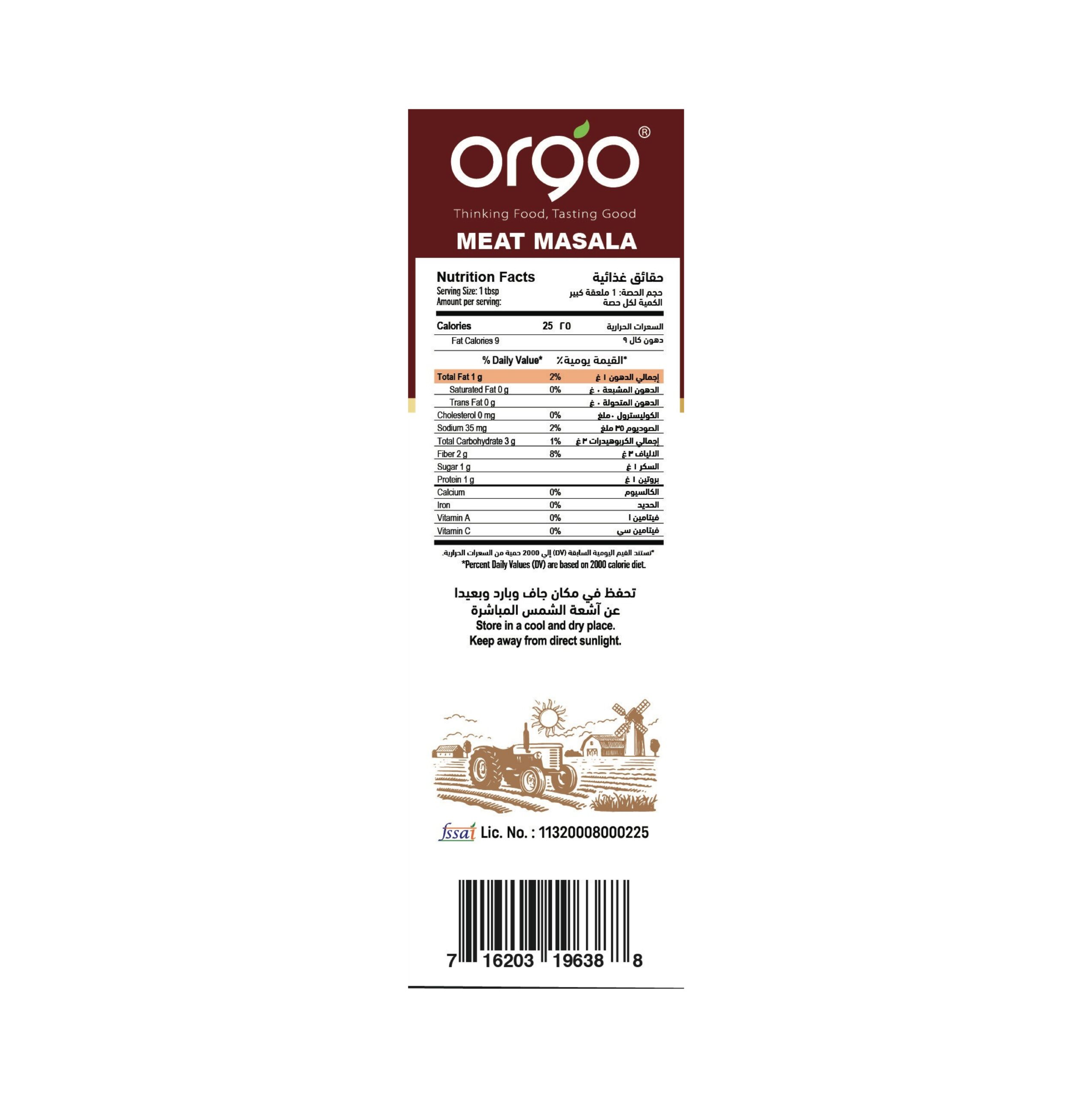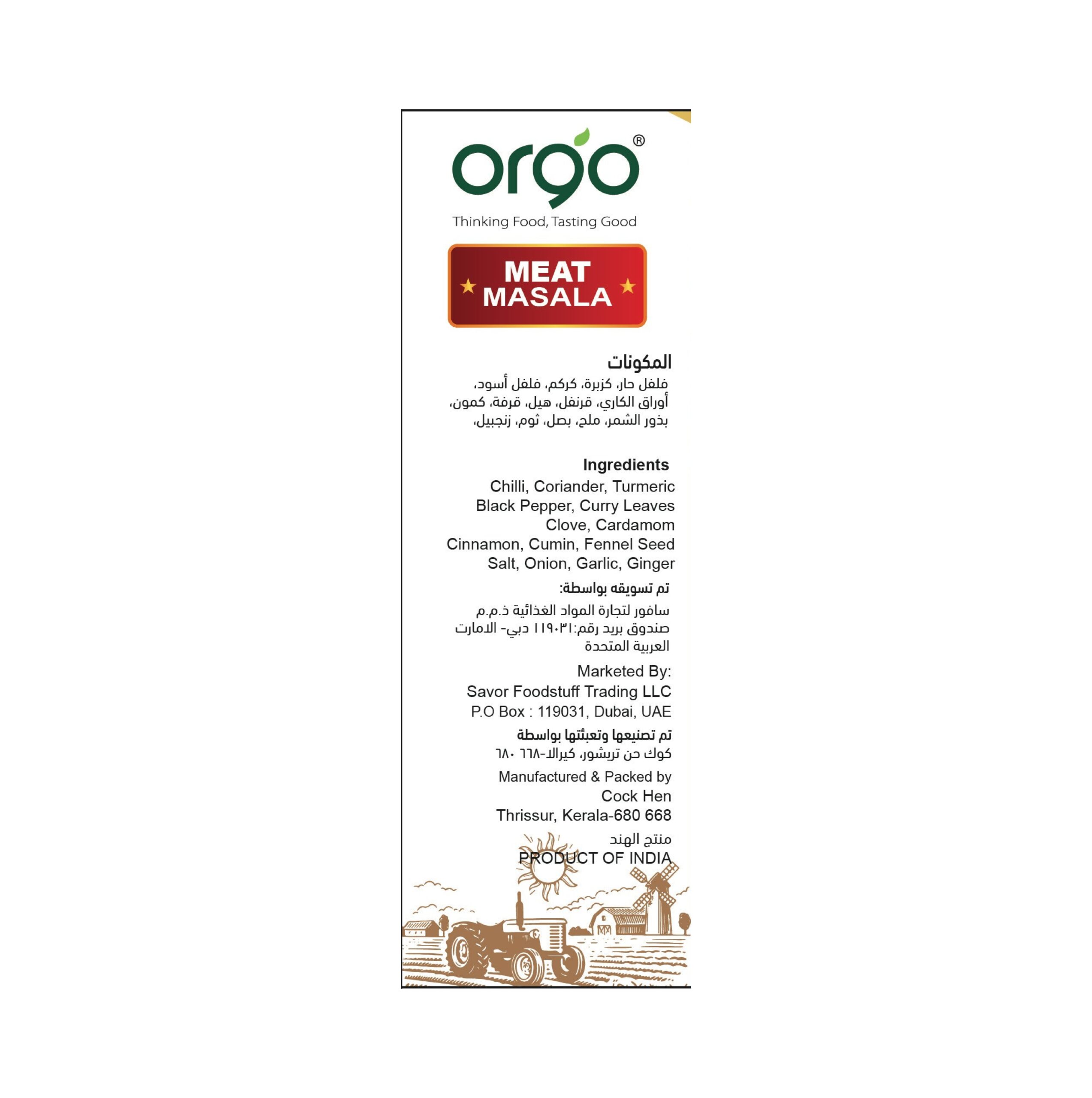 Meat Masala is a robust spice blend used to prepare rich and flavorful meat dishes, including curries, gravies, and dry roasts. It typically includes a mix of coriander, cumin, chili powder, turmeric, black pepper, cloves, cinnamon, cardamom, and nutmeg, delivering a well-rounded and aromatic profile.