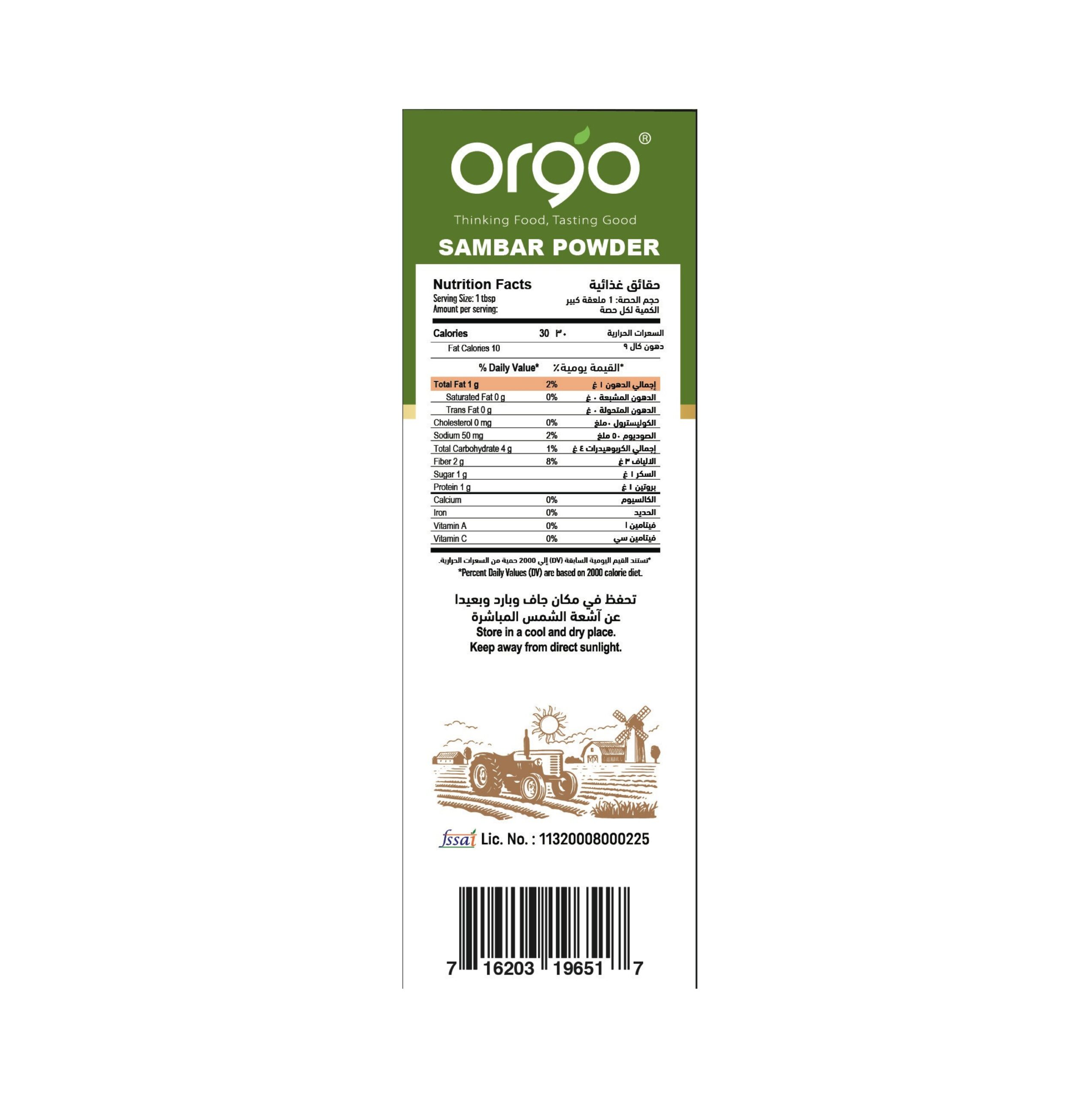 Sambar Powder is a traditional South Indian spice blend used to prepare sambar, a lentil-based vegetable stew. This aromatic powder consists of roasted and ground spices, offering a rich, tangy, and spicy flavor to the dish.