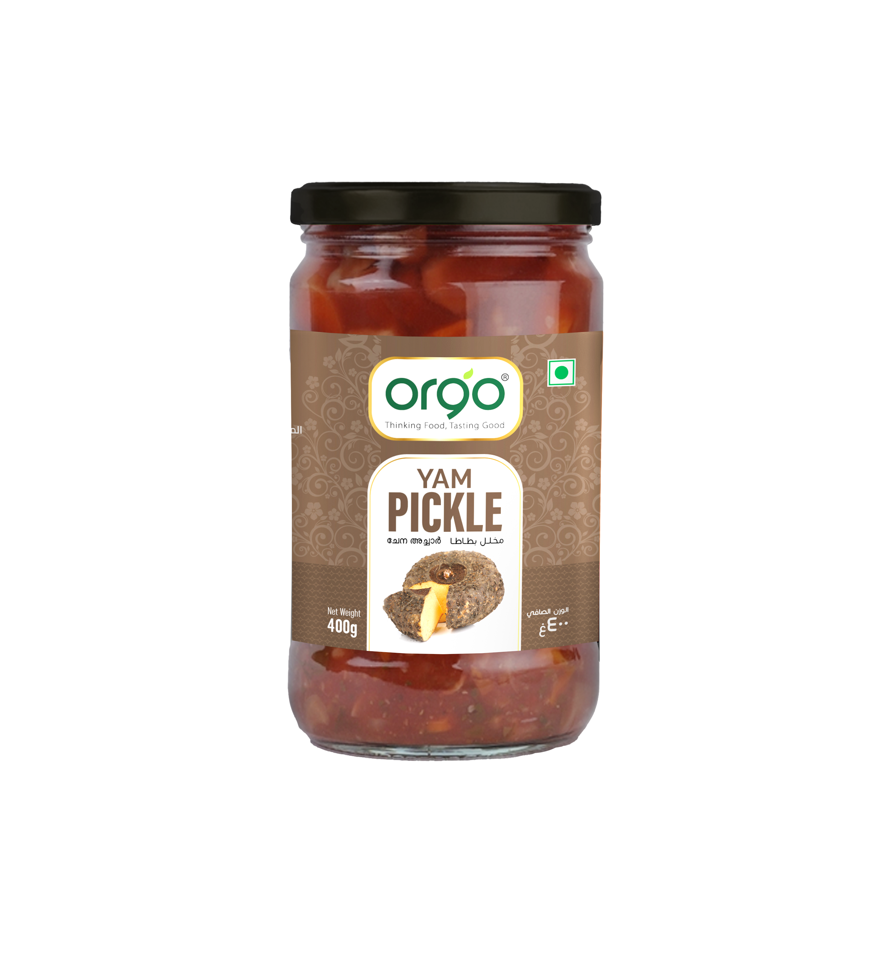 Yam pickle is a savory and spicy condiment made from yam (also known as sweet potato or elephant foot), typically cut into pieces and marinated with a blend of spices, salt, and sometimes oil or vinegar. The earthy flavor of yam is enhanced by the tangy and spicy marinade, making it a popular side dish in various cuisines, especially in South India.